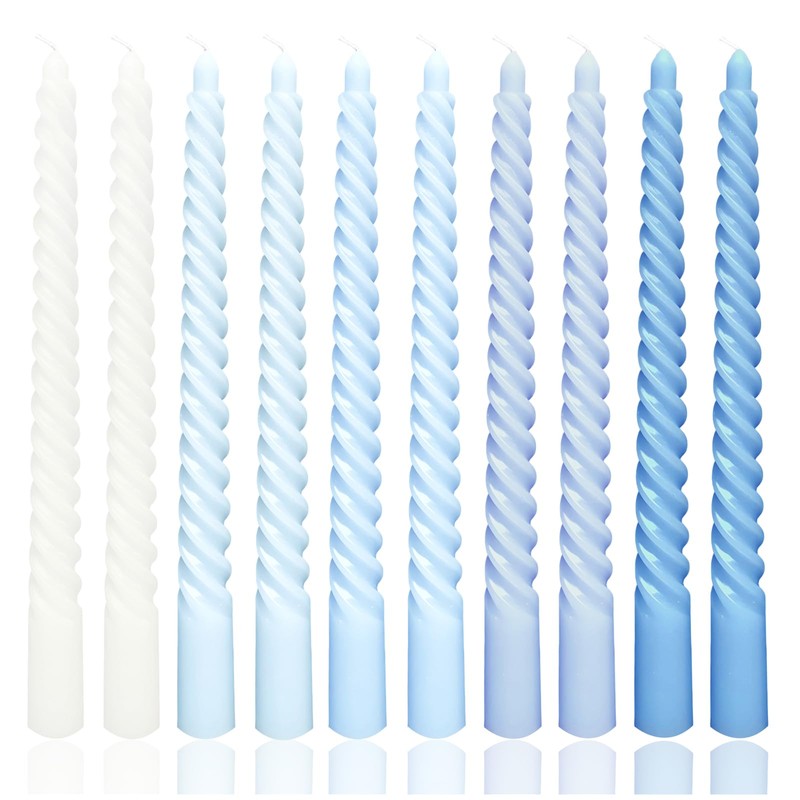 10 Inch Gradient Blue Spiral Taper Candle Set, 10 Pack Unscented Dripless Candlesticks for Dinner Party Brithday Wedding and Home Decoration