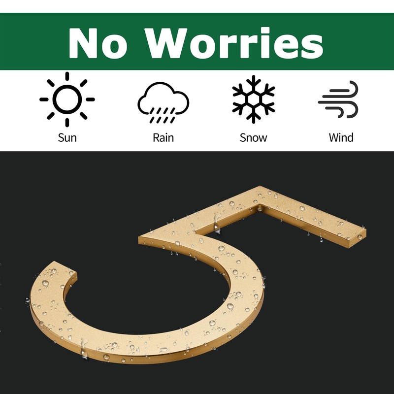 - 2.Weather-Resistant -RESINER large house numbers for outside are made of high quality solid aluminum,10 inch gold house numbers coated with a weather resistant finish and will last for years to come.