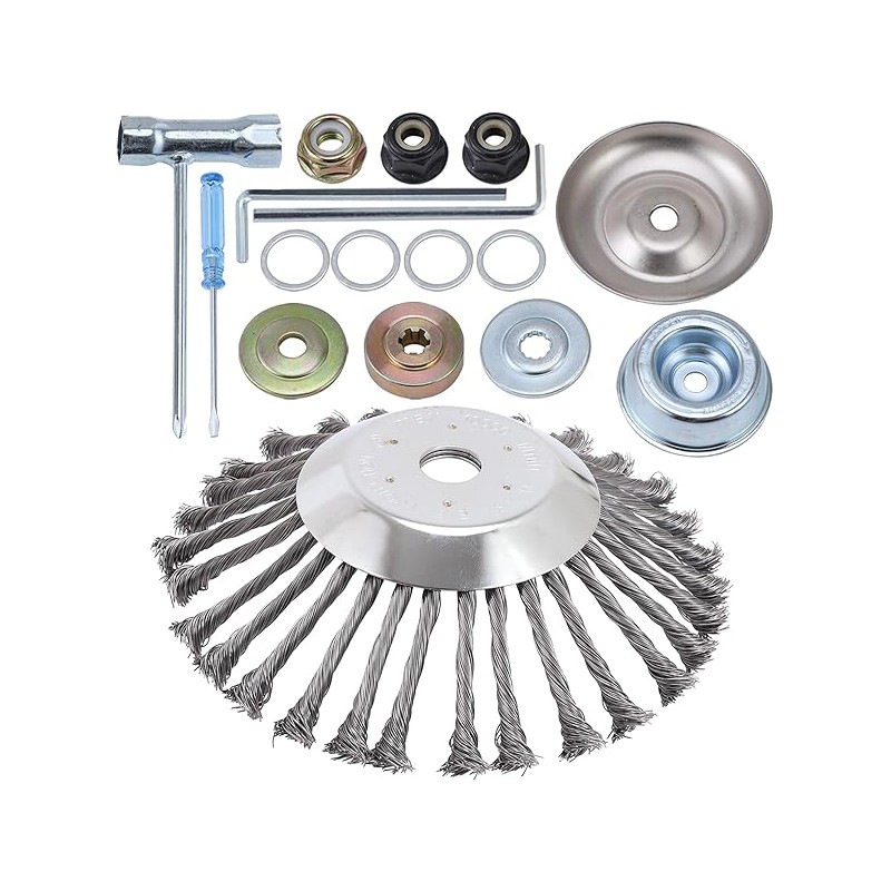 10 Inch Rotary Steel Wire Brush Cutter Trimmer Head Weed Blade Cutter with Adapter Kit Compatible with Stihl, Husqvarna,String Trimmers, Gardening Lawnmower, Moss Grass Rust Removal