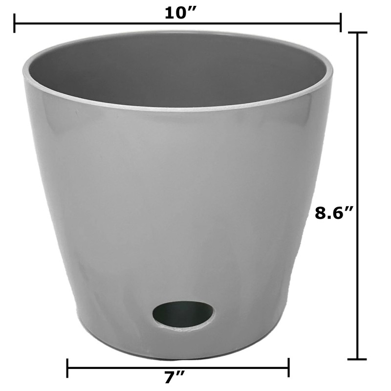 10 Inch Self-Watering Bamboo Planter (Gray) - Round - Bamboo Fiber - No Overwatering or Root Rot