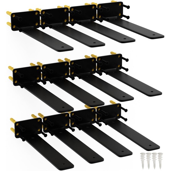 10 Inch Shelf Brackets, 12 Pack Floating Shelf Bracket, 1/5” Thick Carbon Steel Hidden Shelf Brackets, Rustic Industrial Brackets for Wall Decor