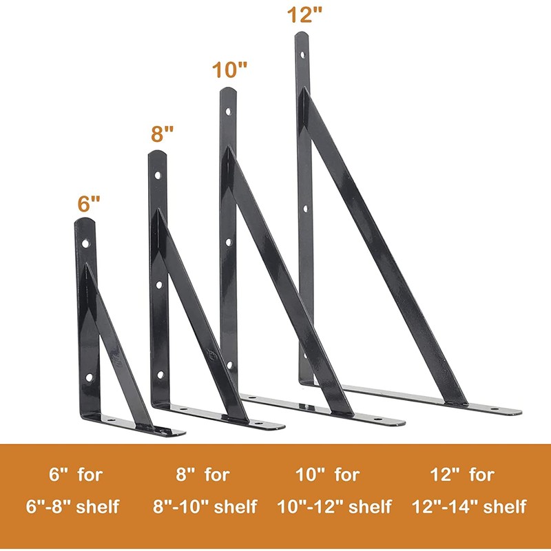 - ⚡ Save Space & Keep Tidy : Measuring 10 x 6 Inches, the shelf bracket perfectly fits the 10” - 12” lumber board. We provide 6”, 8 ”, 10 ” ,12 ” brackets for you to choose , which can meet your different needs, saving much space, making your space more clean and tidy.