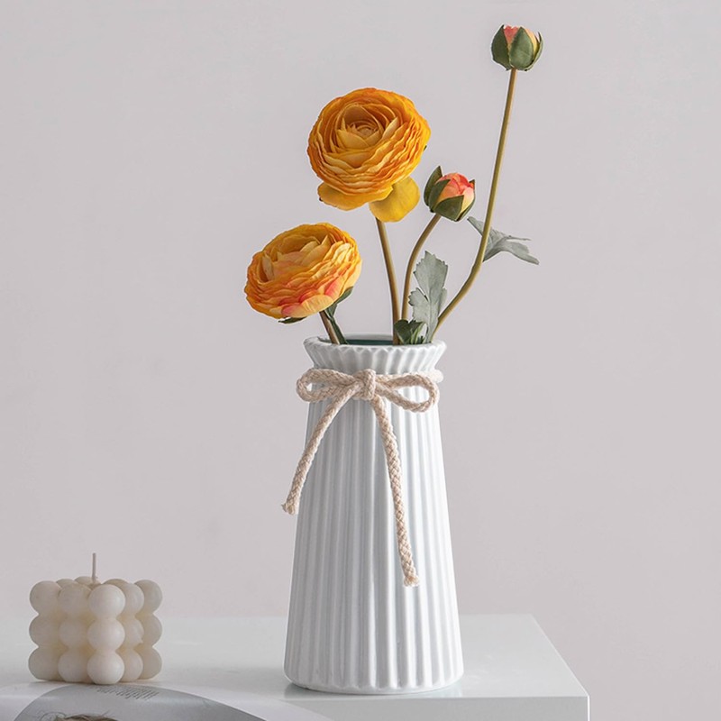 10 Inch White Ceramic Vase, Ribbed Vases for Flowers, Modern Home Decor Vase, Small Flower Vase for Home Office Desktop, Wedding Pampas Grass Vase
