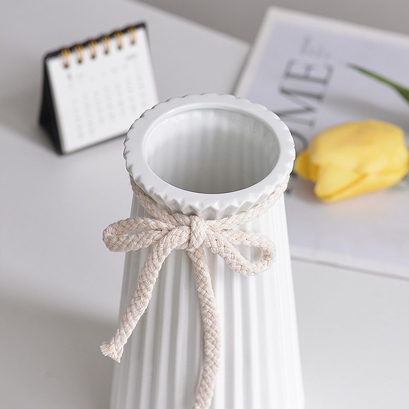 10 Inch White Ceramic Vase, Ribbed Vases for Flowers, Modern Home Decor Vase, Small Flower Vase for Home Office Desktop, Wedding Pampas Grass Vase