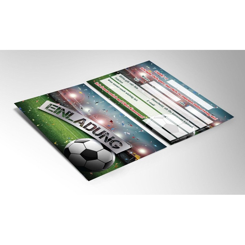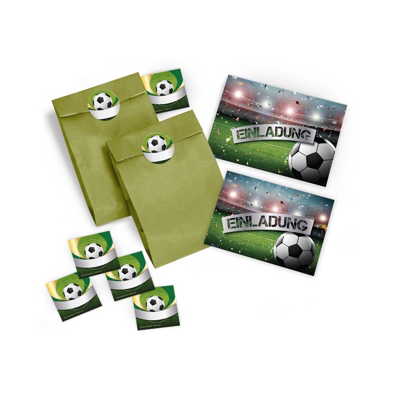 - 10 colourful invitation cards + 10 envelopes + 10 party bags with 10 birthday stickers with the motif "football".
