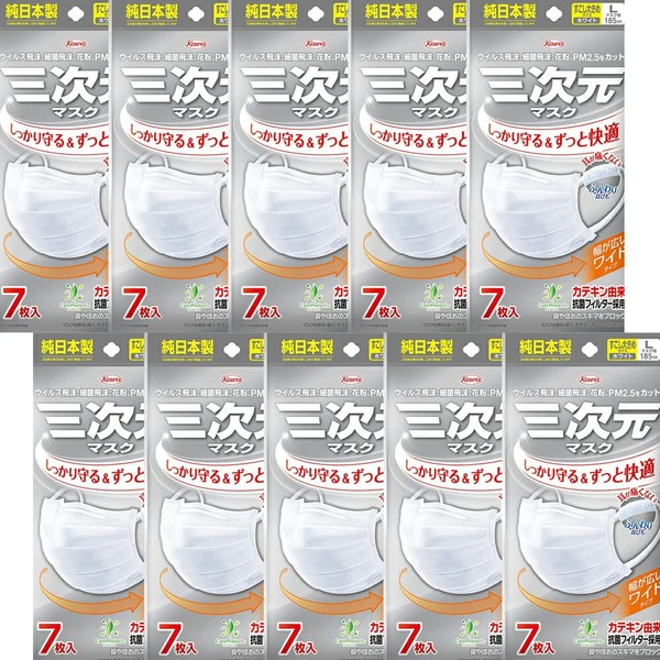 【10個セット】興和 三次元マスク すこし大きめ/Lサイズ 7枚 ホワイト