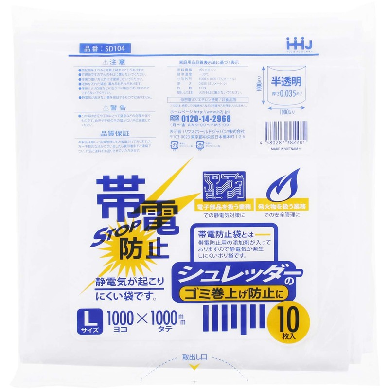 ハウスホールドジャパン ゴミ袋 帯電防止ポリ袋 シュレッダー用 10枚入 半透明 L SD104