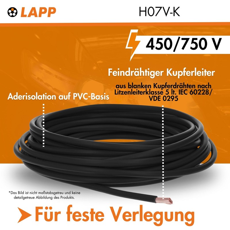 10 m 6 mm² H07V-K from Lapp cable in the colour of your choice.