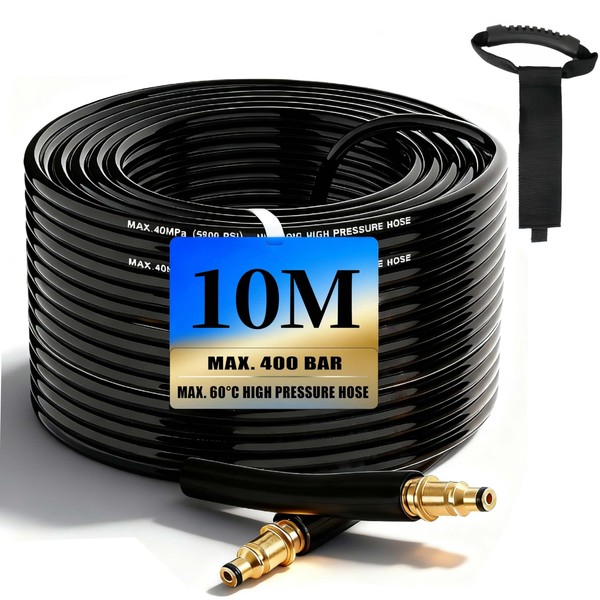 10 m High Pressure Hose for Kärcher K2 K3 K4 K5 K7, 400 Bar (5800 PSI) with Quick Connect Click System, Practical Extension and Replacement Hose with Storage Strap