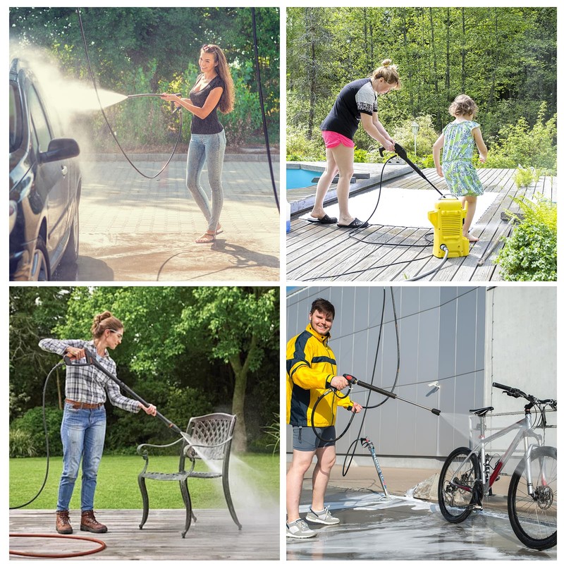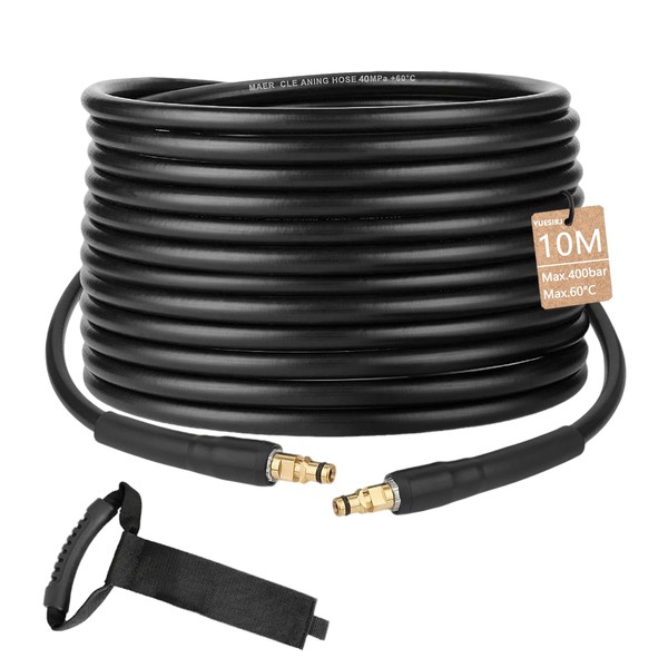 - Versatile and extra long: whether garage, basement, patio, driveway, garden furniture, play equipment, house facade, bicycle or motorcycle - this pressure washer pressure hose masters every cleaning task. With a length of 10 m, it allows flexible cleaning of large areas without having to constantly change the pressure washer.