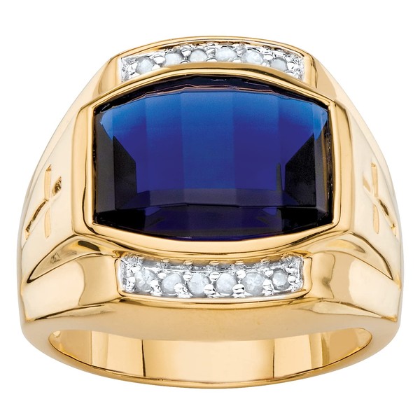 (10) - Men's 5.61 TCW Cushion-Cut Created Blue Sapphire and Diamond Ring 18k Yellow Gold-Plated