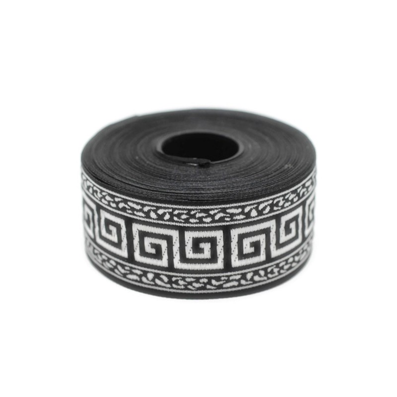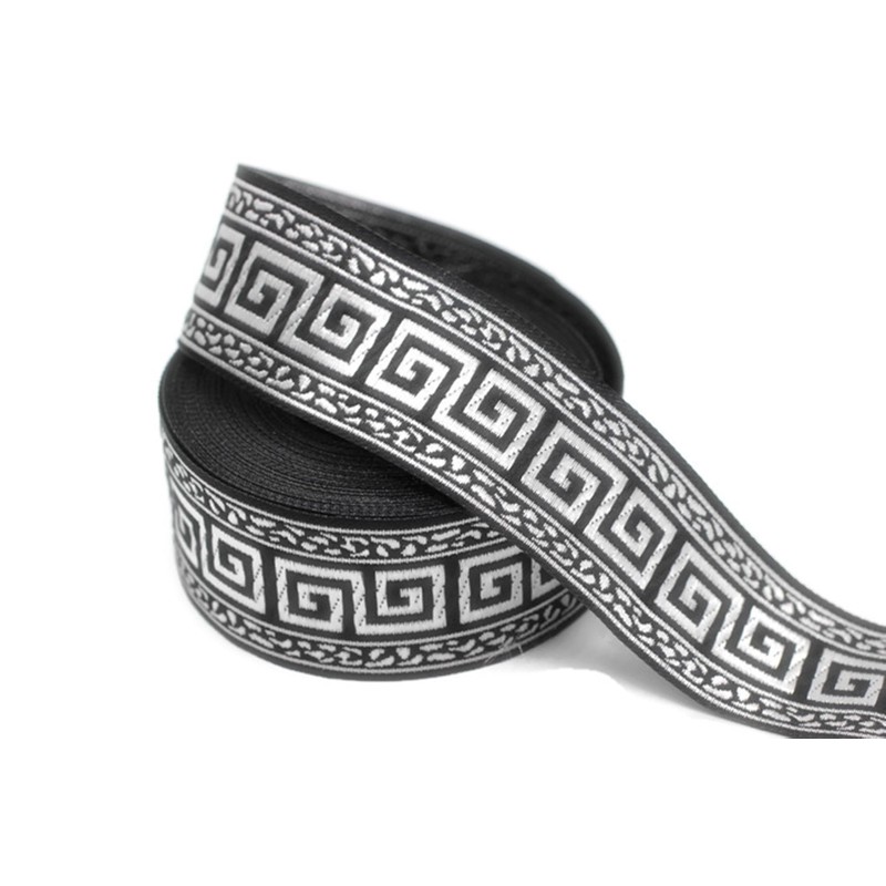 10 Metres 35mm Black and Silver Jacquard Ribbon Woven with Greek Key Motif Rolls Trim Fabric Ribbon Embroidered Craft Clothing Haberdashery Hobby Creative Decoration Medieval Sewing 35060