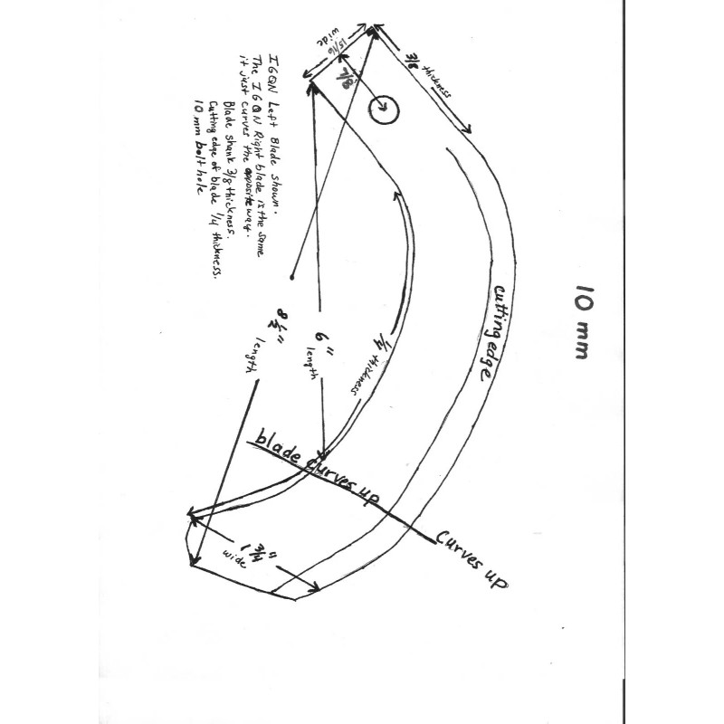 10 mm blue rotary tiller tines 1 left and 1 right
