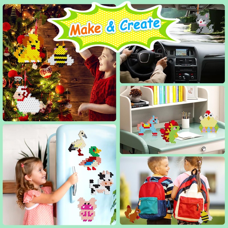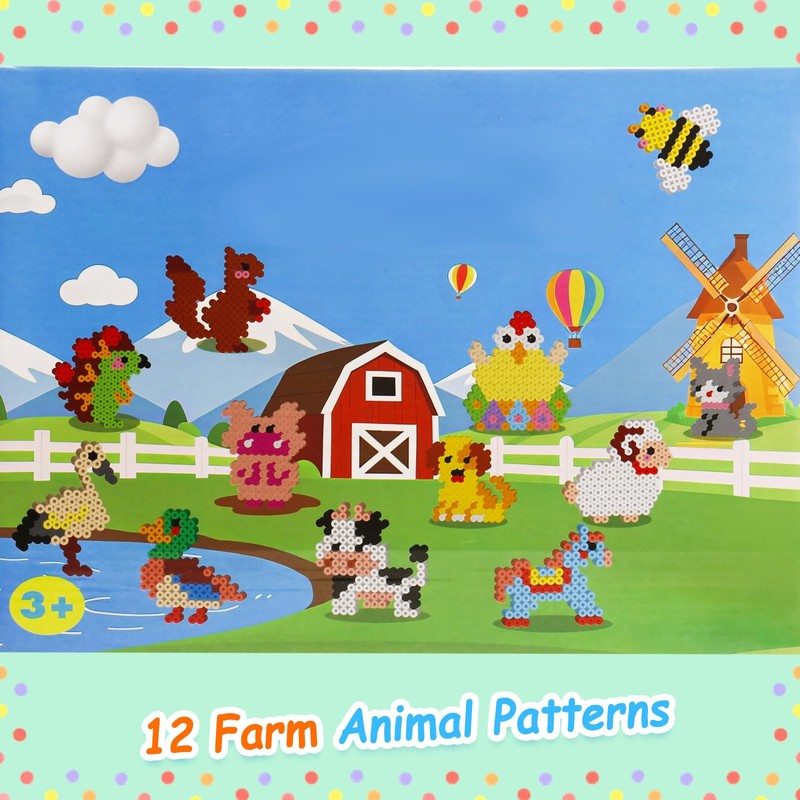 - 12 farm animals theme: the 10 mm iron-on beads set, set contains 12 cute animal patterns, including chicken, duck, goose, dog, cow, squirrel, etc. Children can create their own traffic patterns while developing creativity, concentration and imagination. Ideal for encouraging artistic expression and teamwork in group activities.