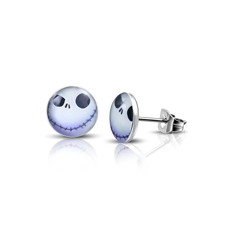 10 MM Stainless Steel Happy Jack Skellington Round Circle Button Stud Post Earrings