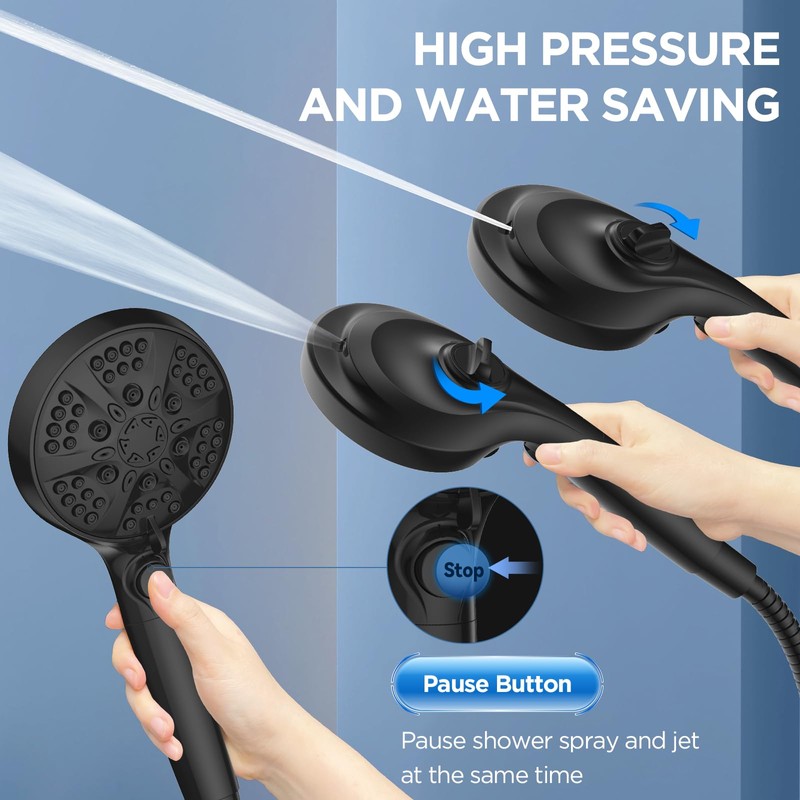 - 🚿Tool-free Installations in 1-minute:The hand held showerhead comes with complete accessories (showerhead, 360°adjustable shower holder, stainless steel hose, anti-leaking teflon tape, instructions), and offers easy and detailed installation instructions. Follow the detailed instructions, installations can be done within a minute and you can enjoy a comfortable shower experience. Children, elderly, and ladies can also effortlessly finish that