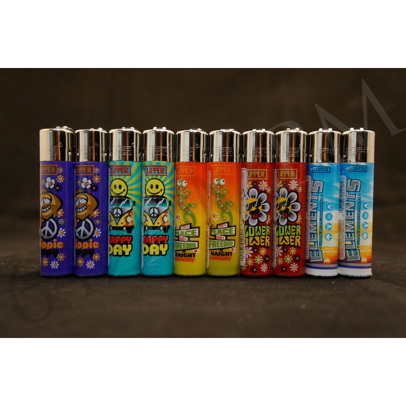 10 New Refillable Original Clipper Lighters 8 Hippi & 2 Element Design