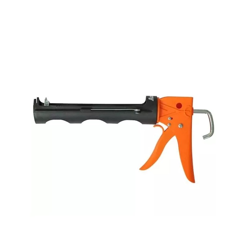 Anvil 10 oz. dripless ratchet caulk gun is a lightweight caulk gun with rotating barrel for easy applications around edges and corners. It offers an 8:1 thrust ratio making it ideal for 10 oz. tubes of acrylic/latex and silicone caulk. The ratchet rod helps deliver consistent flow during application and is suitable for light to medium duty projects. Features include a drip free tip that helps prevent waste, a built-in spout cutter to safely snip the tip off a caulk tube, seal punch to break the inner seal of a caulk tube, and ladder hook.