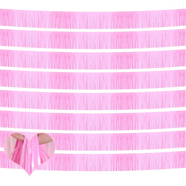 10 Pack 10 Feet Foil Fringe Garland Metallic Tinsel Banner Wall Hanging Curtain Streamers Backdrop for Parade Floats Bachelorette Wedding Birthday Party Thanksgiving Christmas Decorations(Pink)