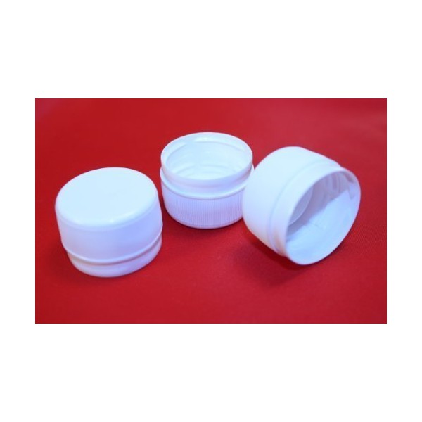 10 Pack 28mm White Plastic Bottle Caps These plastic caps screw on to 28mm PET bottles to seal the bottle until the contents are needed. One-piece / liner less closure creates an air tight seal. Tamper evident - Unmistakable visual and audible tamper evidence upon breaking the tamper band. Ridged outer cap for grip when opening. Ideal replacement caps for our Tube Vaults.