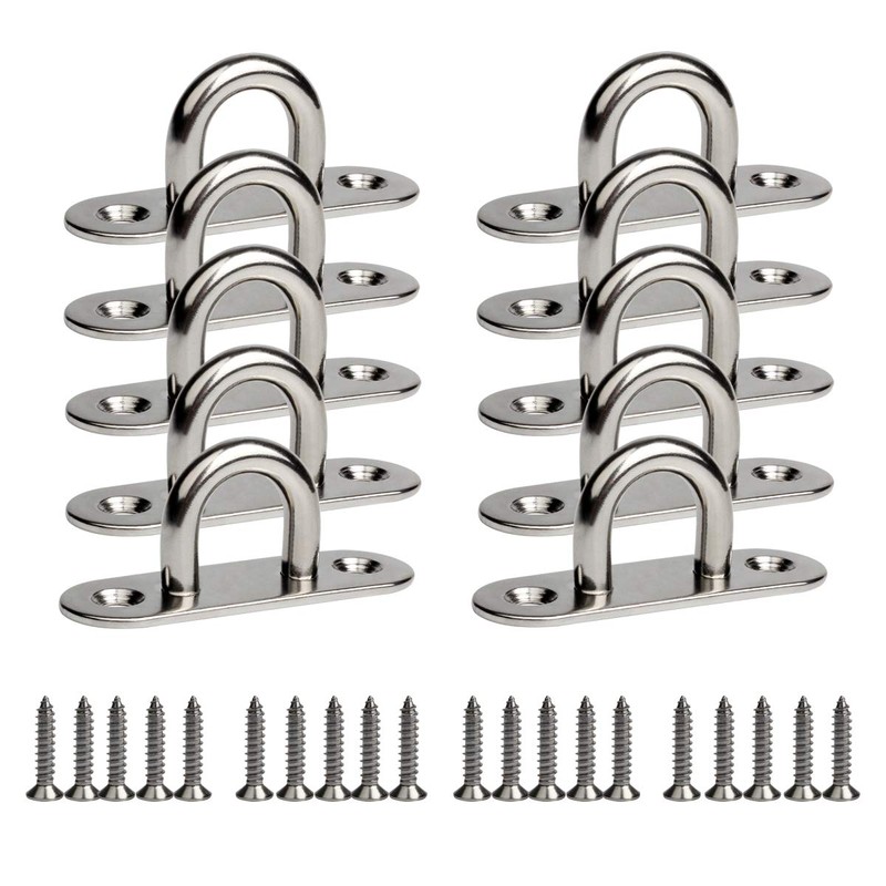WOFTD pad eye plates U hook are made of 304 stainless steel,smooth surface without burrs, corrosion resistant, durable.Wide range of uses and easy to install. Color: Silver. Material: 304 Stainless steel. Corrosion resistance, high strength, durable and easy to install Bright surface polishing, smooth surface without burrs Can use in small yachts and boats, also can be use to hang light fixture, chandelier etc.