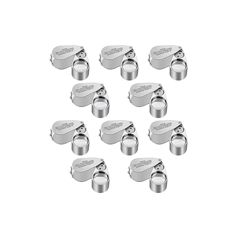 10 Pack 40X Full Metal Illuminated Jewelry Loop Magnifier, XYK Pocket Folding Magnifying Glass Jewelers Eye Loupe with LED(LED Currency Detecting/Jewelry Identifying)