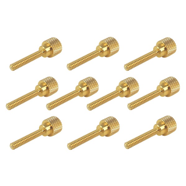 10 Pack 6-32 x 3/4 Inch Threads Solid Brass Diamond Knurled Thumb Screws Knobs with Straight Shoulders Right-Hand Threads SAE Flat Tip Uncoated (6-32 x 3/4 inch Long Threads)