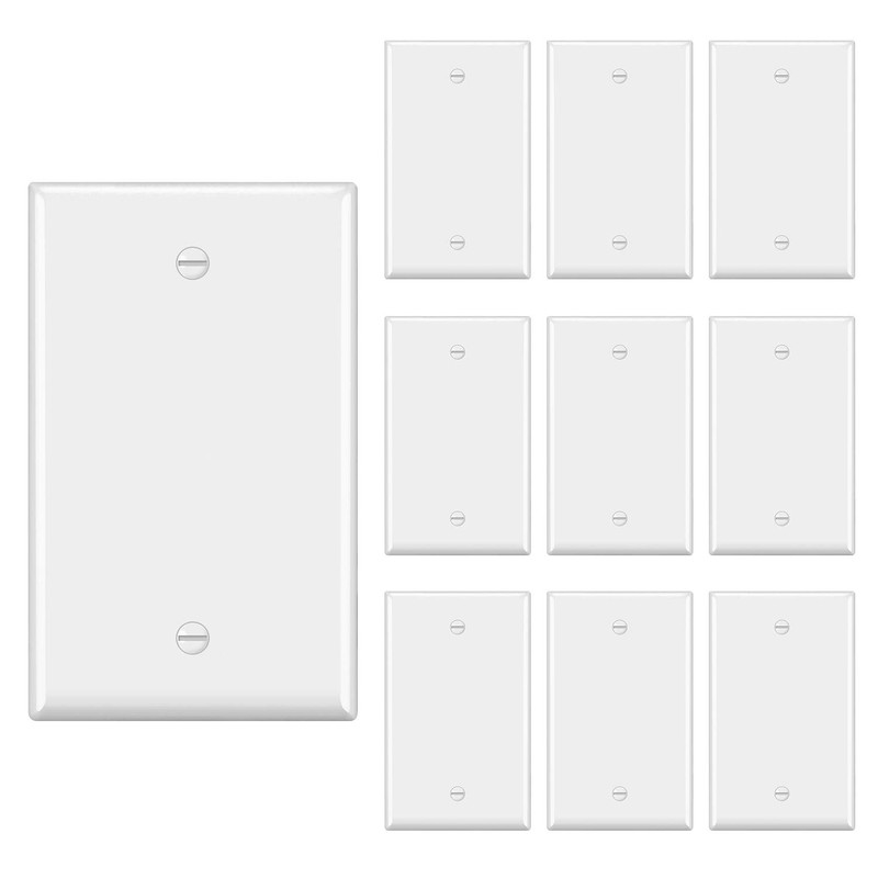 [10 Pack] BESTTEN 1-Gang No Device Blank Wall Plate, Standard Size, H4.53” x W2.76”, Unbreakable Polycarbonate Thermoplastic Outlet Cover, UL Listed, White