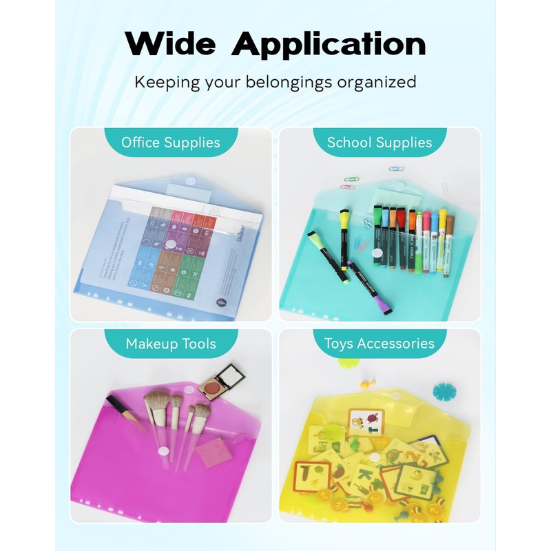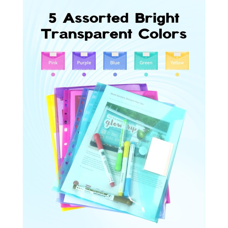 10 Pack Binder Pocket, 11 Ring Clear File Folders, Plastic Envelopes Organizer for Documents with Label, A4 Size