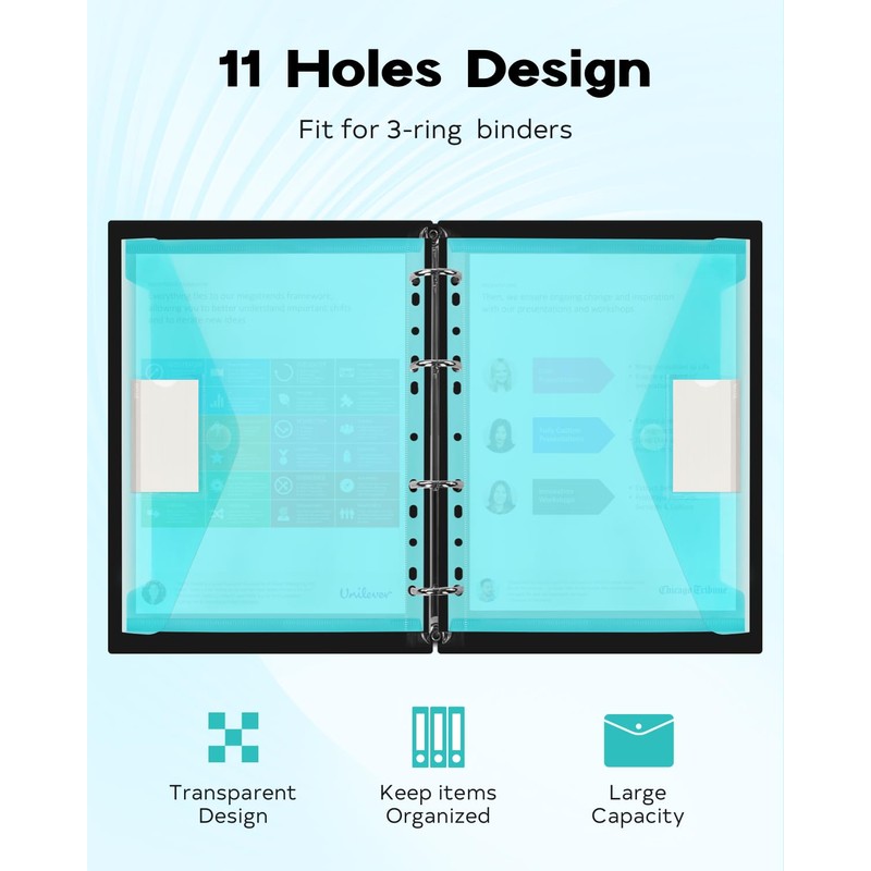 - 11 holes to fit standard 3 ring binders and other different types of loose-leaf binders