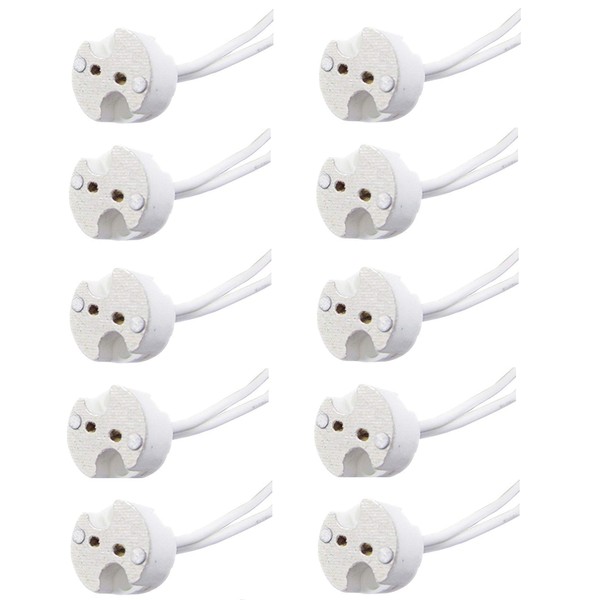 10 Pack Bioluz LED MR16 Socket, GU5.3 Socket, LED Halogen Lamp Ceramic Wire Connector Base Socket Adapter MR16 MR11 G4 GU5.3 Socket (Pack of 10)