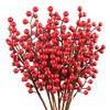 - 🎄HIGH MATERIAL: Artificial red berries are made from high quality silk ,iron wire, foam ball.The foam berries are covered with a glossy lacquer coating. The berry twigs are resting on the main stem that is designed with inner wire and wrapped with brown floral tape. You can easily shape and arrange them to your liking.