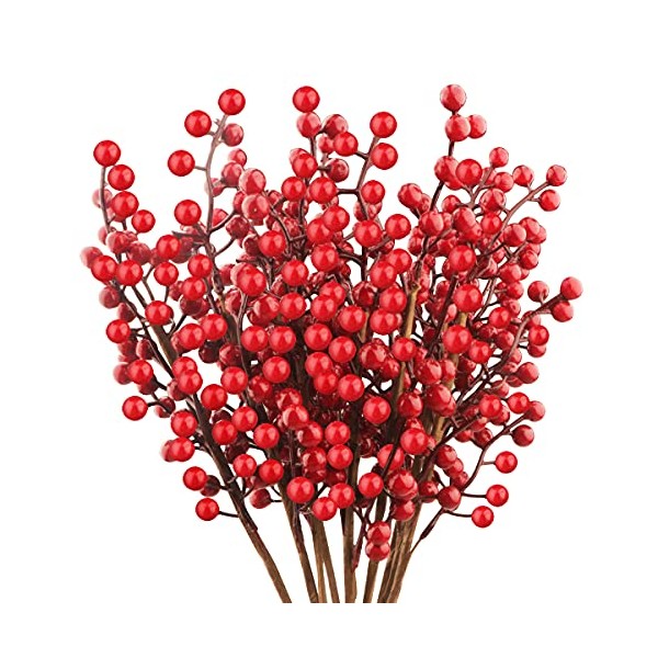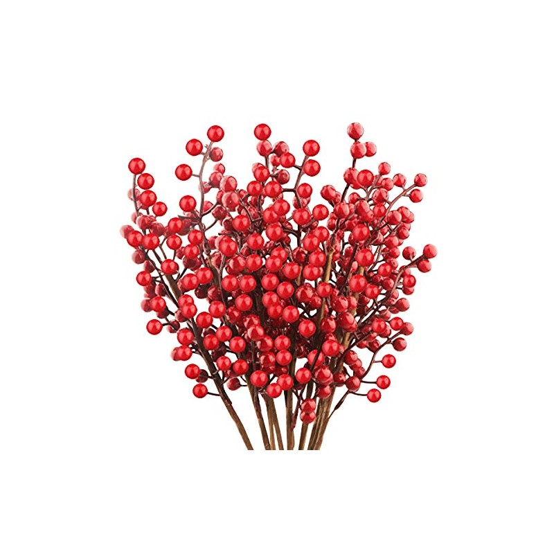 - 🎄CLASSIC DESIGN: The berries are bright red in color and the stems have a burgundy tone, which will add rich colors and beautiful details to any floral arrangement.Perfect Christmas tree decor, the artificial red berries are great for decorating your Christmas tree, increasing Christmas atmosphere.
