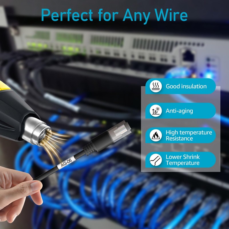 - Pakage include ▶ 10 Pack Compatible with hse 231 heat shrink tube label tape; Diameter: 1/2 inch (11.7mm) Width x 4.92 feet (1.5m) Length, can be used for cables in 3.6 mm (0.14inch) and 7.0 mm (0.28inch); Color: Black on White.