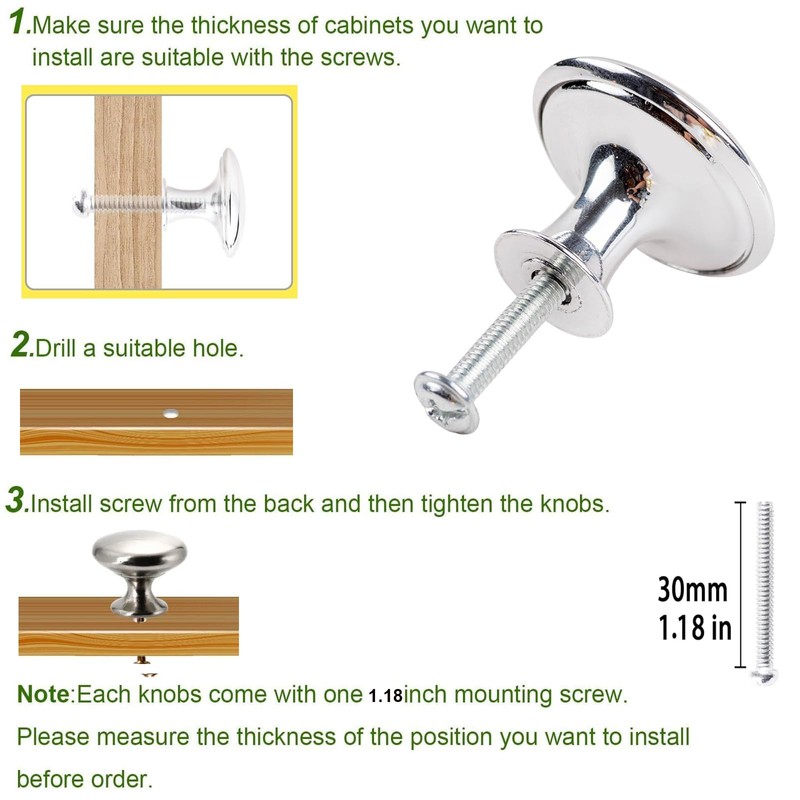 - Package List - You will receive 10 pieces of silver knobs and 10 pieces of screws, which are enough to satisfy your various daily needs and replacement; Screws included in the package help to simplify your work and improve the efficiency of installation process.