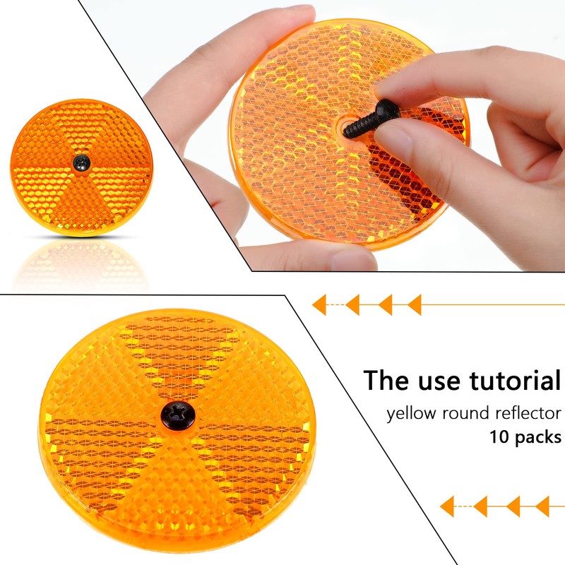 10 Pack Front Reflector Round Reflector for Driveway Fence Gate Posts Trailers Safety Reflectors Automobiles Boats Mailboxes Reflector with Center Mounting Hole (Yellow)