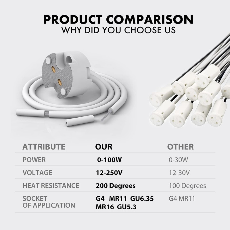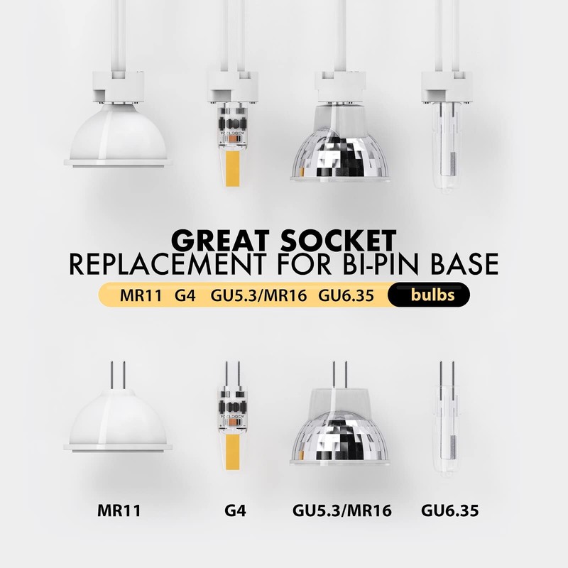 - 【Compatible Bulbs】:Can be used with G4. MR16. MR11. GU5.3. GU6.35, Wattage ≤ 100W, Volatge 12-250V , perfect for Chandelier , Cabient Light , Landscape Light ,Table Lamp
