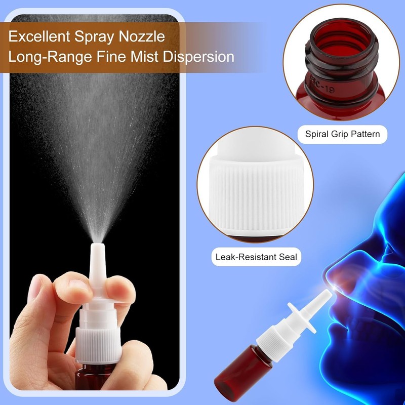 • Travel-Friendly & Leakproof - the travel glass spray bottle is Compact 10ML size easy to use on the go or while traveling, with you wherever you go, our nasal spray bottle empty is perfect for packing in purses, backpacks, or travel kits.Leakproof design keeps contents secure during transit—no messy spills in your bag.
