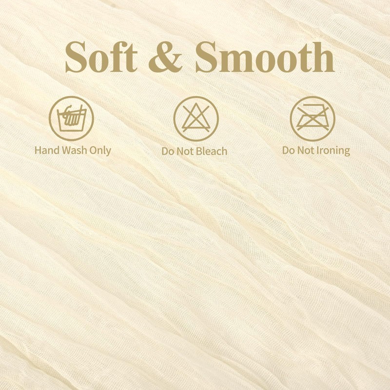 - PREMIUM MATERIAL:Made from high quality premium polyester, this cheesecloth tablecloth is soft, romantic, sophisticated and flowy. All ends are locked with fine stitching for comfort and long-lasting. Rustic boho style table runners can be hung beautifully over tables, creating beautiful ruffles or let them float loosely on the floor, adding a touch of uniqueness and elegance to your parties and events. Use Ivory cheesecloth table runners for any occasion or decorative need.