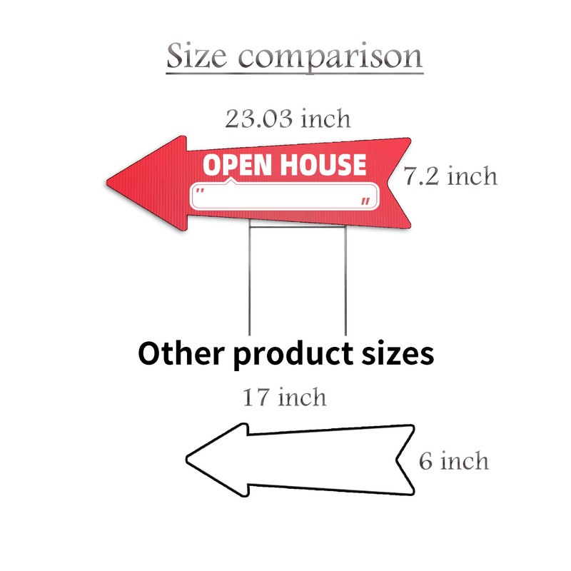 - - Abundant quantity: This package includes 10 high-quality open house arrow yard signs with stakes, providing you with ample signs to use or replace as needed. With a size of approximately 23 x 7.2 inches, these signs are large enough to catch attention and convey your message effectively.