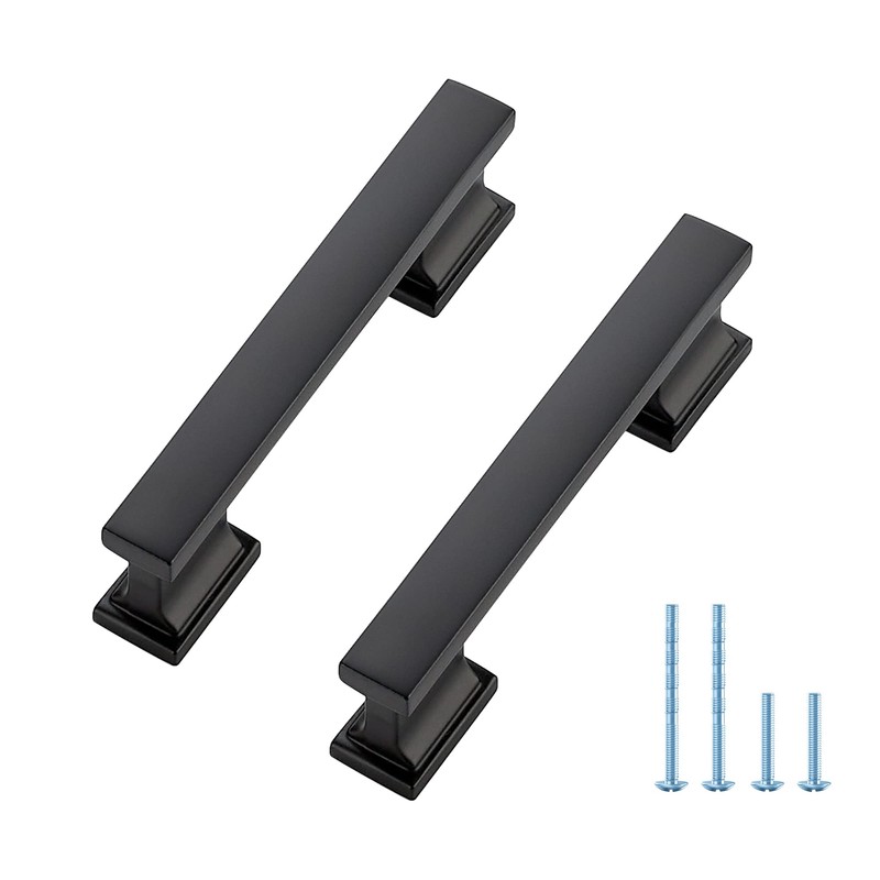 - What's in the set: It including 10 PCS matte black kitchen pulls for cabinets and furniture. And each kitchen cabinets handles come with 2 PCS 1 inch screws and 2 PCS 1-3/4 inch breakaway screws. The screw size is M8-32