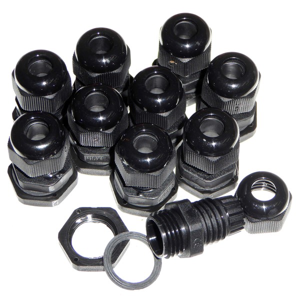 - 10 Pack of Black 16mm / M16 Cable Compression Glands