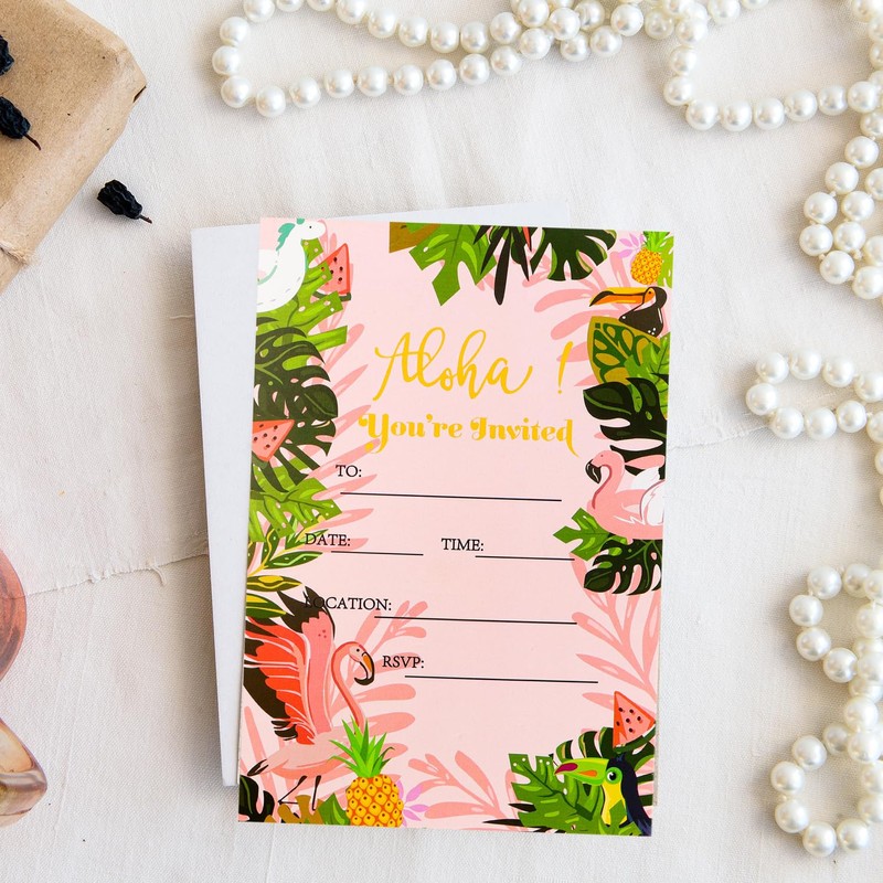 - 🐱💻【Beautiful Design】Party invitations designed with exquisite hawaiian themed party,sweet and simple unique for the invitation cards.