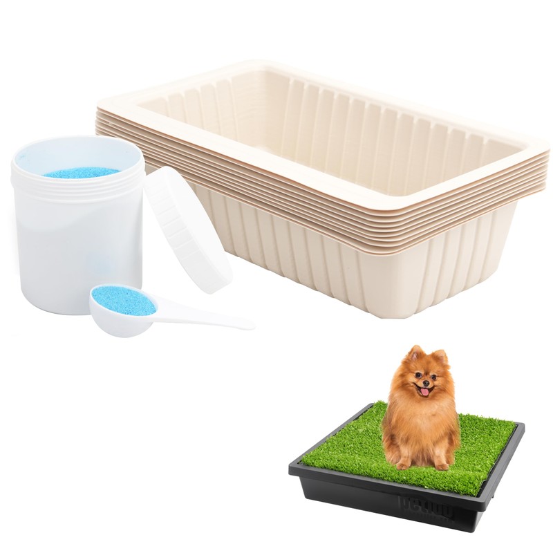 - INCLUDED IN BUNDLE: The package includes 10 packs of pee-pod disposable dog potty trays specially designed to be compatible with PetSafe Pet Loo Portable Dog Potty, and a box of 7 oz absorbent powder for urine absorption. (Portable Dog Potty NOT Included)