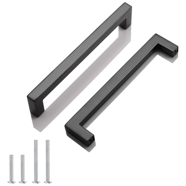 **Home Building Store Provide Full Size Cabinet Handles perfect addtion to any kitchen cabinet, furniture door, cupboard, desk drawer, wardrobe drawers, shoe cabinet, chest, bookcase and much more.** **★PRODUCTION SPECIFICATION:** \--Material: Stainless Steel; \--Color Finish:Black; \--Size:Width:12mm(1/2in);Thickness:12mm(1/2in);Height:35mm(1.4in); \--Hole Centers:160mm(6-1/4inch);Overall Length:172mm(6-3/4inch). **★PACKAGE INCLUDE: ** \--Induindividual package of selected pulls; \--Come with 2 pcs 25mm mounting screws; ★ **Cabinet/Drawer Thickness Guide:** \--14mm(0.55")-19mm(0.75") thick drawer/cabinet will need 25mm(1" ) long Screws. \--19mm(0.75")-24mm(0.95") thick drawer/cabinet will need 30mm(1.2" ) long Screws. \--24mm(0.95")-29mm(1.14") thick drawer/cabinet will need 35mm(1.38" ) long Screws. \--29mm(1.14")-34mm(1.34") thick drawer/cabinet will need 40mm(1.57" ) long Screws. \--34mm(1.34")-39mm(1.53") thick drawer/cabinet will need 45mm(1.77" ) long Screws. ★ **NOTICE:** \--Please note that the handles are Hollow constructions, you will feel a little light weighted, but good quality and real stainless steel made.Please confirm both center to center on the holes that are in the board and the board thickess before you choose the size.