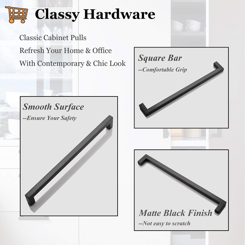 (10 Pack)Probrico Flat Black Cabinet Handles Square Drawer Pulls 10 Inch(256mm) Hole Center Stainless Steel Modern Cabinet Hardware