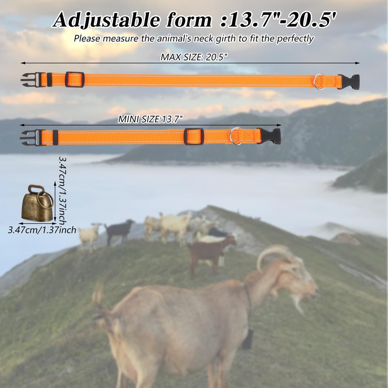 - High quality materials:The goat collar is made of high-quality nylon material, durable, and non-fading;The anti-loss bell is made of high-quality brass, sturdy and loud clear sound, so you don't have to worry about losing your goats