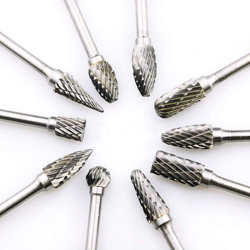 10 Pack Rotary Burr Set Carving Tool For Metal Wood Woodworking Engraving Drilling Grinding Head for Rotary Tools Tungsten Carbide Steel Solid Twist Dril Bit