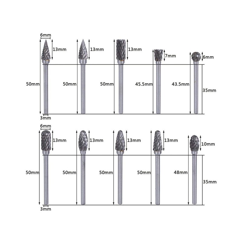 10 Pack Rotary Burr Set Carving Tool For Metal Wood Woodworking Engraving Drilling Grinding Head for Rotary Tools Tungsten Carbide Steel Solid Twist Dril Bit
