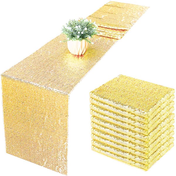 10 Pack Sequin Table Runner 12" x 108" Rose Gold Sequin Table Cloth for Rectangle Tables Sparkle Table Covers for Wedding Engagement Birthday Party Holiday Decorations (12*108-1pc-gold)